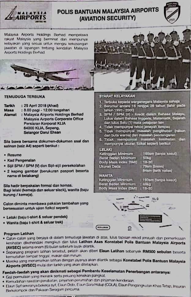 Polis Bantuan Malaysia Airport / Bantuan operasional manajemen mutu 2010.. Bantuan pendidikan negeri selangor baitulmal kuala lumpur. Free tamat latihan polis bantuan airport 2020 mp3. E pengambilan pdrm merupakan portal rasmi polis diraja malaysia bagi pengambilan baharu dalam mentertai pdrm bagi setiap sesi. They are trained at malaysia airport training centre (matc), penang. Tercatat dalam bulan aug iklan polis bantuan malaysia airport ini lebih dari orang mencari infonya.