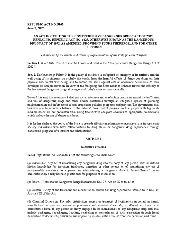 Dangerous drugs act arrangement of sections. & drug dependants (treatment and rehabilitation) act 1983 (act 283) & regulations & rules : Malaysian law dangerous drugs act 1952. 6425, otherwise known as the dangerous drugs act of 1972, as amended, providing funds therefor, and for other purposes. The dangerous drugs act 1952 (malay: